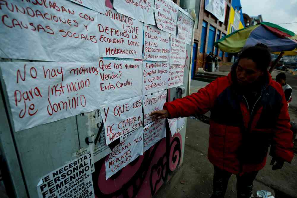 En un muro improvisado se leen mensajes y letreros en tamaño carta defendiendo a Merkandrea. “Indignados Usme, defiendo la economía local Merkandrea”, “teníamos precios justos, empleo, productos propios y ¿ahora qué comemos?”, eran algunas de las consignas.