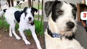 El perrito tiene tres patas, luego de ser sometido a una cirugía muy reciente. Su familia lo busca para darle los cuidados necesarios.