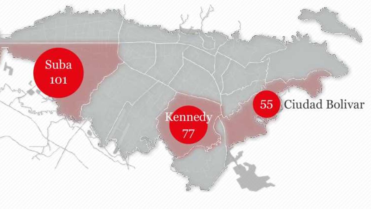 Según el análisis de las autoridades, existen tres localidades con el mayor número de lugares críticos: en Suba hay 101 puntos, en Kennedy 77 y en Ciudad Bolívar 55. La elección de estos puntos no fue al azar. Para determinar los lugares más peligrosos de la ciudad la Policía Metropolitana realizó un serio análisis basado en estadísticas de criminalidad de los últimos tres años.