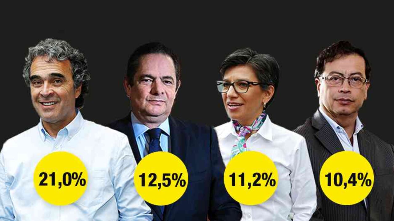 Más rezagados aparecen Humberto de la Calle (8,3 %), Iván Duque (6,9 %), Jorge Robledo (5,3 %), Marta Lucía Ramírez (4,6 %), Clara López (3,2 %), Alejandro Ordóñez (3,1 %), Piedad Córdoba (1,4 %), y Juan Carlos Pinzón (1,2 %). En blanco votaría el 2,1 % de los consultados.