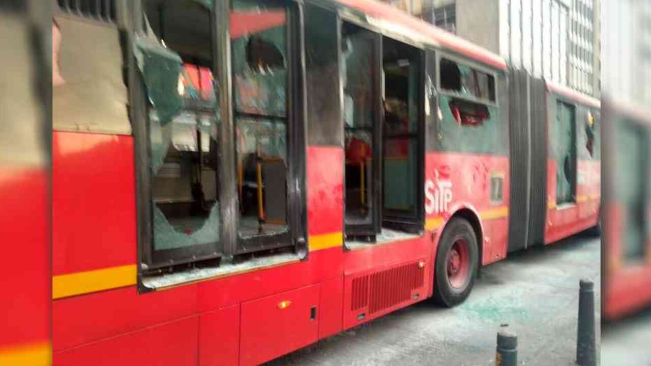 En el centro de Bogotá, la situación se presentó a causa de manifestaciones violentas. Según informaron usuarios en redes sociales, los ataques contra los articulados y las estaciones de Transmilenio se habrían dado luego de un operativo de la DIAN en San Victorino.