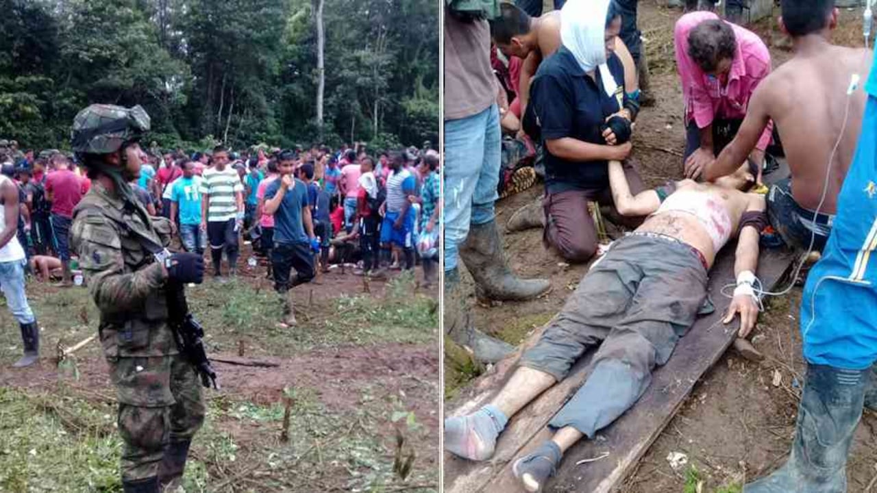 La situación se produjo en el caserío Puerto Rico, que hace parte del municipio de Tumaco. Pero en todo este episodio hay dos versiones. Según la información suministrada por el Ejército y la Policía, hombres armados lanzaron explosivos contra integrantes de la fuerza pública, que escoltaban a erradicadores de matas de coca, y contra una multitud congregada en el lugar para protestar contra esa labor.