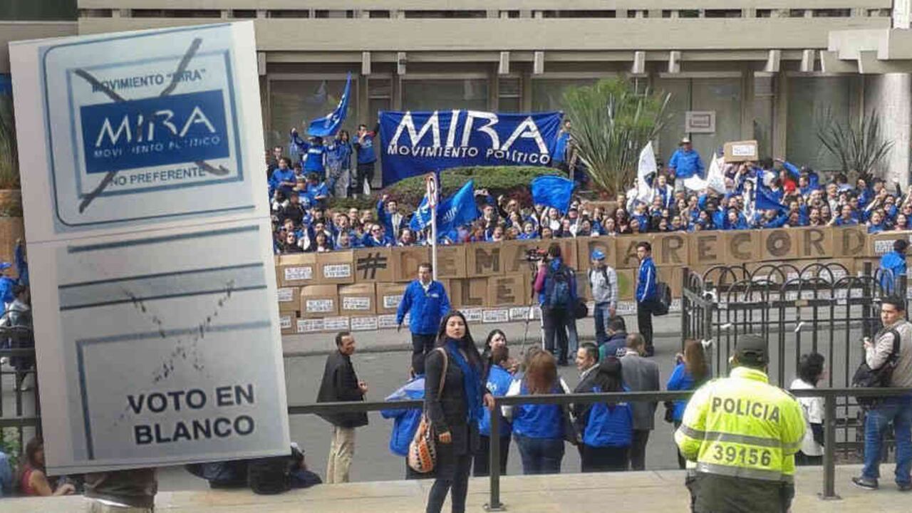 Eso llevó al presidente del partido, Carlos Alberto Baena, a hacer un detallado ejercicio de reconstrucción de los hechos para indagar qué había pasado. Los primeros insumos de varios voluntarios permitieron identificar una situación absurda. En muchos lugares, la Registraduría había repartido marcadores de secado lento para que los ciudadanos pudieran votar. Como el logo del Mira estaba en la esquina superior derecha del tarjetón y el del voto en blanco, en la esquina inferior derecha, cada vez que un elector marcaba la X encima del Mira y doblaba la papeleta, la tinta terminaba marcando una X borrosa encima de la casilla del voto en blanco. Cerca de 80.000 votos terminaron anulados por tener una doble X: una marcada y otra hecha por cuenta de la tinta húmeda.