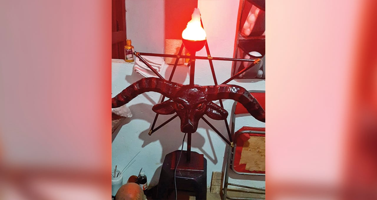 Pese a su devoción por el diablo, era un asunto que pocos conocían, en su casa tenía un lugar privilegiado para sus ritos. Era un cuarto oscuro donde tenía un altar, velas, la estrella de satanás, y una especie de toro negro con largos cachos que era iluminado por una antorcha.