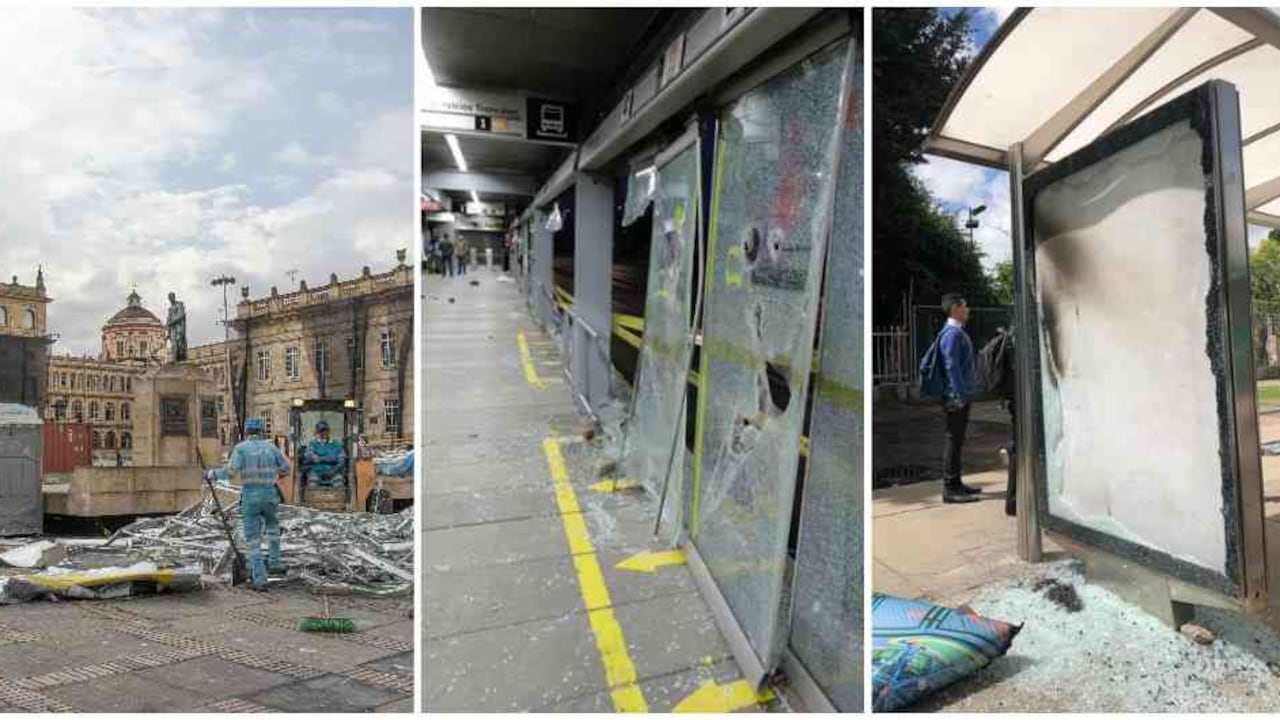 Sin duda, la infraestructura más afectada ha sido la de TransMilenio. Hasta el momento 99 estaciones han sido vandalizadas, esto corresponde al 71 por ciento de las que tiene el sistema, y varias de ellas revandalizadas. Según ha explicado el Distrito, hasta ahora los costos para reparar TransMilenio superan los 4.500 millones de pesos, que no incluyen las 300 bicicletas que se robaron en el clicloparqueadero del portal de Suba y los nuevos casos de vandalismo que se han presentado. Tampoco se tiene en cuenta los millones de viajes que han dejado de hacerse y el dinero por el que de todas maneras el Distrito tendrá que responderle a los operadores del sistema.