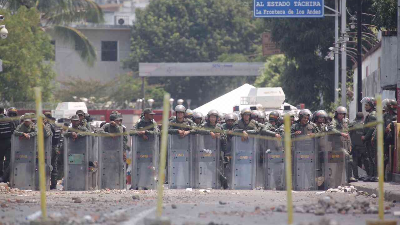 Horas más tarde, se apreció un despliegue militar en la mitad del puente internacional Simón Bolívar, que conecta al municipio de San Antonio (Venezuela) con Villa del Rosario (Colombia).
