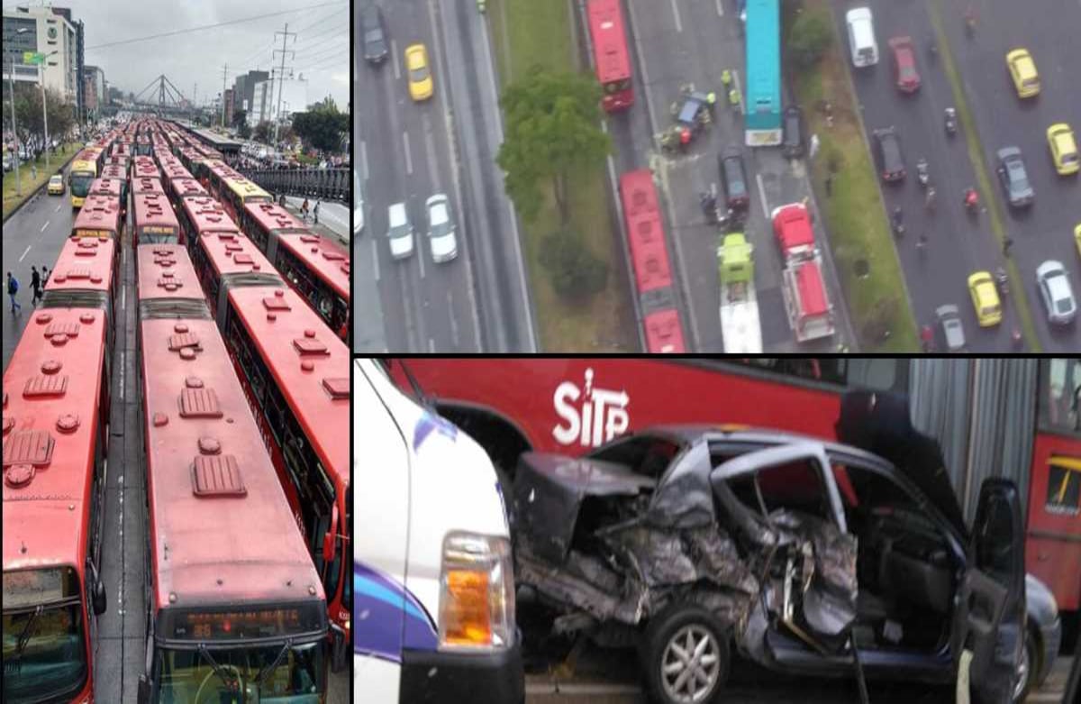 El fuerte aguacero que sorprendió este viernes en Bogotá tiene colapsada la capital. Al menos tres puntos de la ciudad presentan congestión vehicular. Además, se reportaron decenas de accidentes simples en las primeras horas de la mañana.El reporte de los bomberos muestra que en la Autopista-norte, la Circunvalar, Suba y el Centro de la ciudad hay problemas de movilidad.El caso más crítico se presenta en el Norte de la capital, donde un vehículo particular chocó contra un bus de Transmilenio. Dos jóvenes, de 22 y 24 años, fueron trasladadas con traumatismos craneoencefálicos a la Clínica los Nogales.En el caso de la Avenida Suba con Avenida Boyacá, dos microbuses de servicio público colisionaron. Según las autoridades, se brindó atención prehospitalaria a 10 personas lesionadas.En la Circunvalar se presentan varios disturbios por cuenta del desalojo que vienen adelantando las autoridades en los Cerros Orientales. En las redes sociales también se han entregado varios reportes: