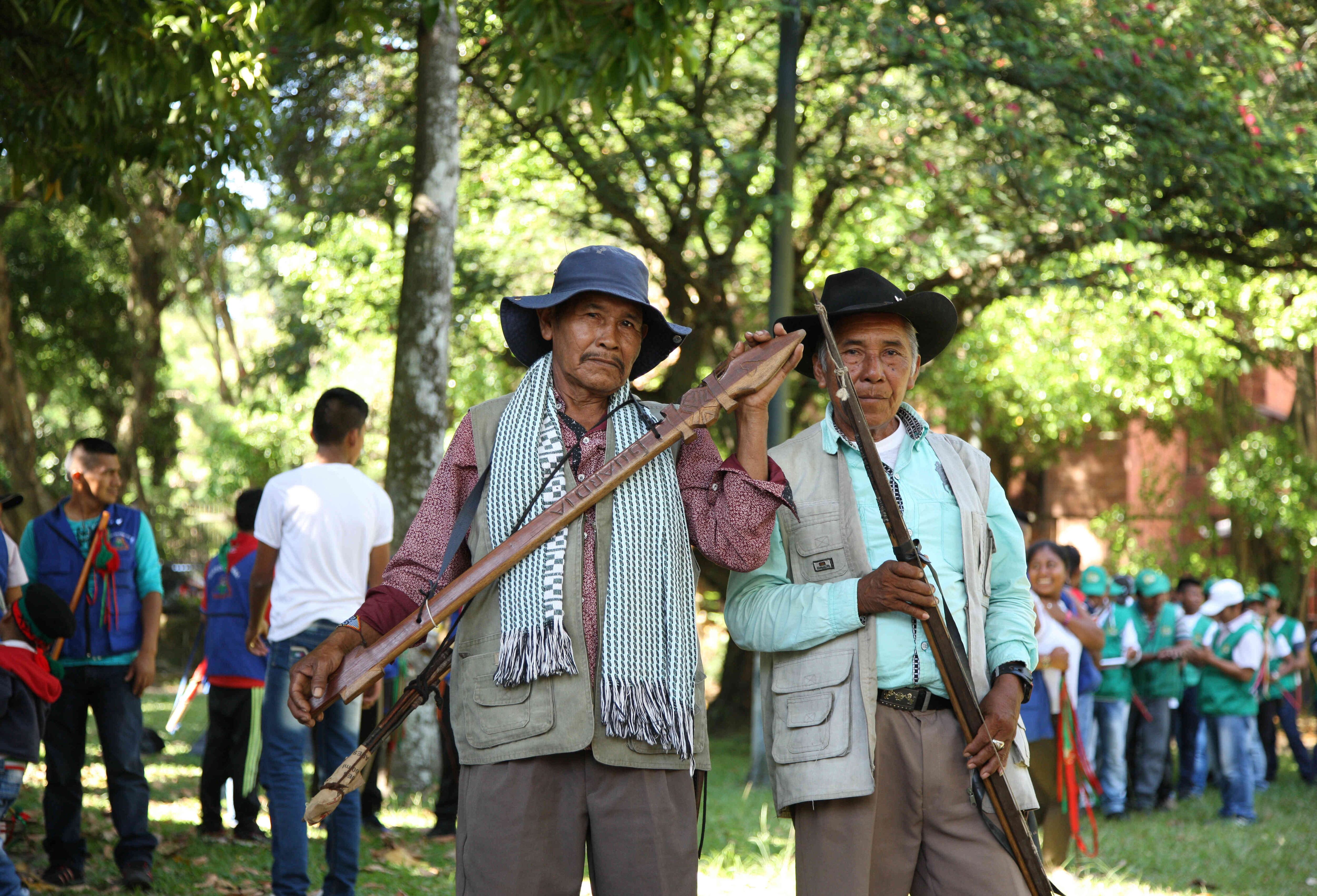 Neriberta. ¡Guardia, guardia, fuerza, fuerza! es la arenga con la que los indígenas, sosteniendo la chonta de mando, reiteran la resiliencia que los caracteriza.