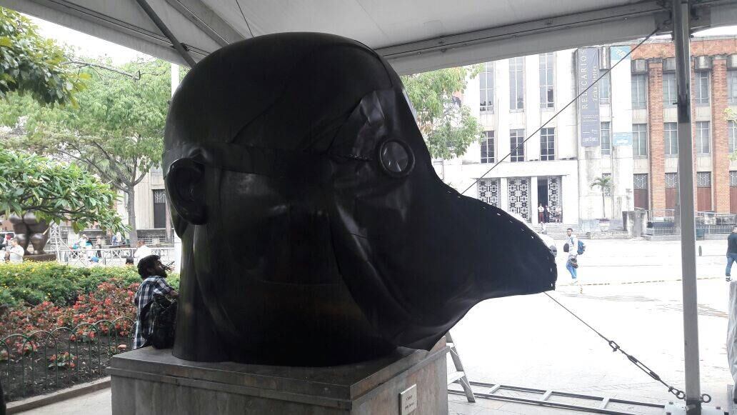 Hasta las esculturas de Botero llevan tapabocas por la contaminación