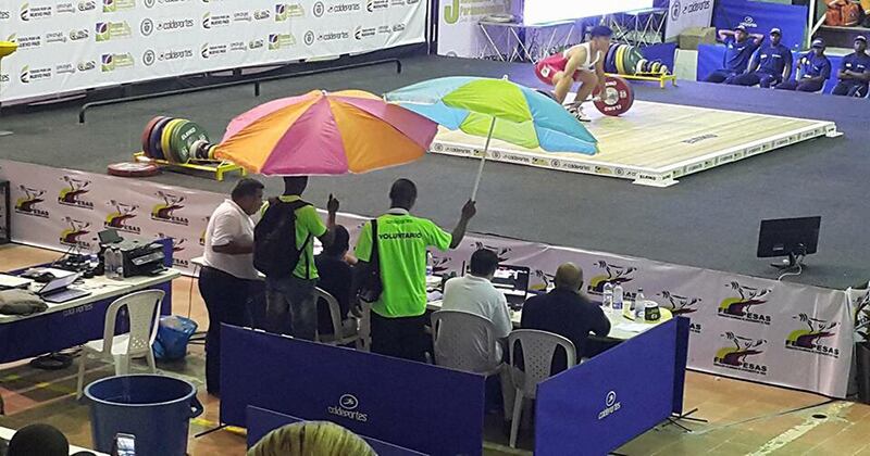Deportistas de 17 ligas se vieron sorprendidos cuando enormes goteras empezaron a caer cerca de la zona de levantamientos.