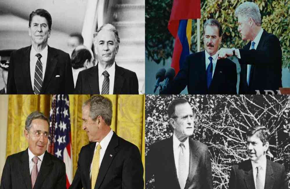 El presidente de Estados Unidos, George H. W. Bush (1989-1993), con el presidente de Colombia, Virgilio Barco (1986-1990). El 15 de febrero de 1990 Bush padre llegó a Cartagena para la Cumbre de Presidentes Andinos, en la que trataron el tema del narcotráfico y, además, afianzaron alianzas para incentivar el café colombiano.