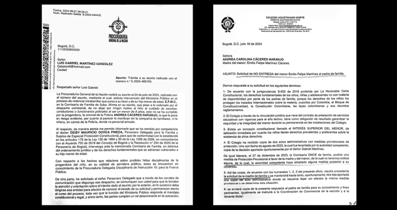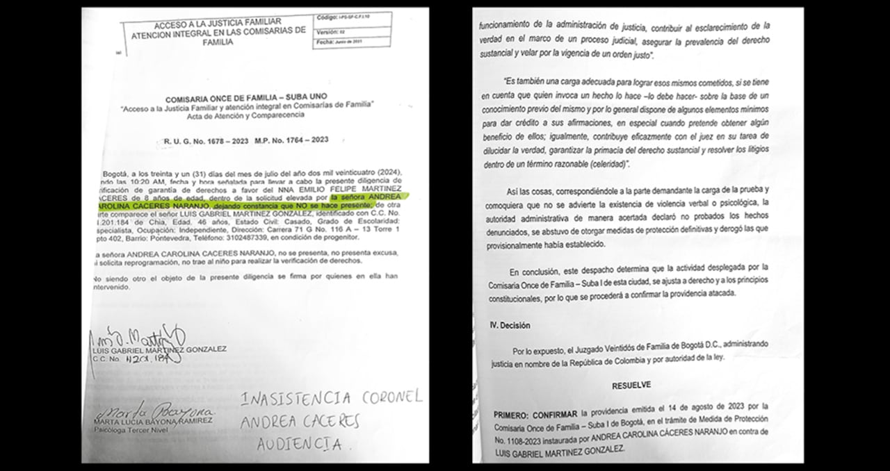 Al mismo tiempo SEMANA tuvo conocimiento de unas medidas de protección de una Comisaría de Familia en la que advierten la condición de víctima de la coronel Cáceres y su pequeño hijo, y en contra de quien radicó la denuncia, justamente el papá del menor y exesposo de la oficial a cargo del talento humano en la Policía.