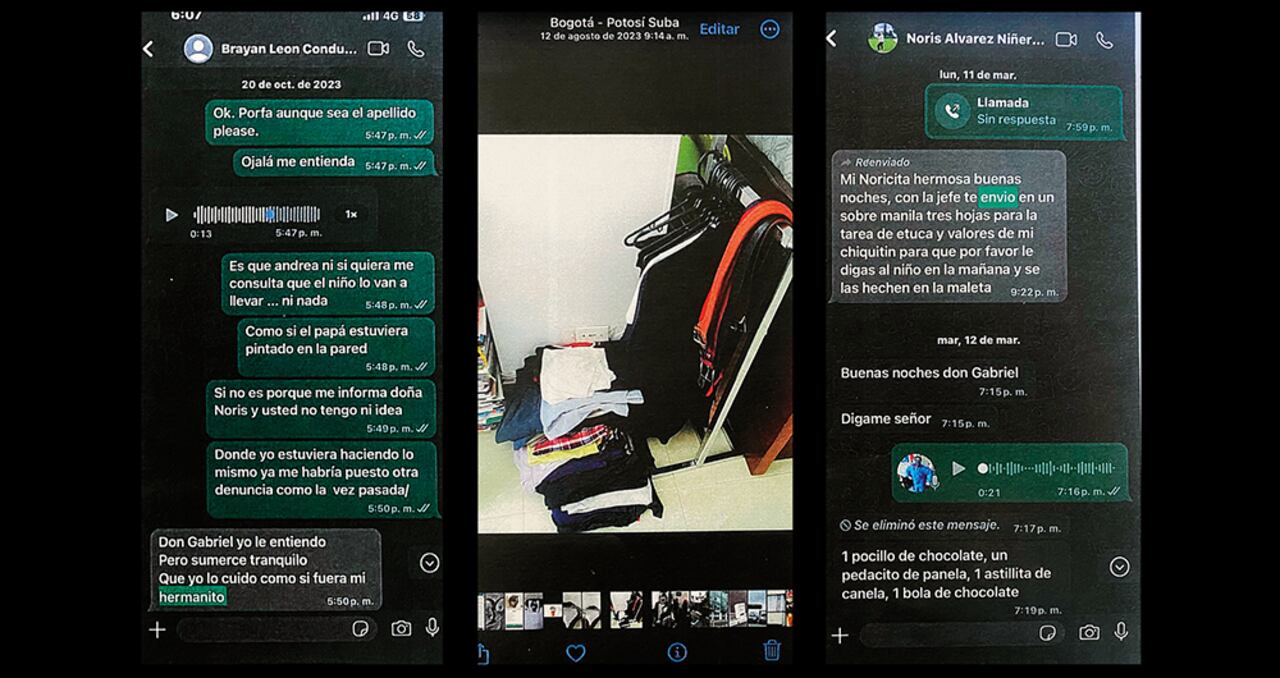 Incluso, en otras conversaciones que se sumaron al expediente por violencia intrafamiliar contra la directora de talento humano de la Policía, se lee cómo, supuestamente, a través de la secretaria de la coronel, se remiten, por orden de la oficial, las tareas del colegio del menor. La niñera acusa el recibido de las tareas en la misma conversación.