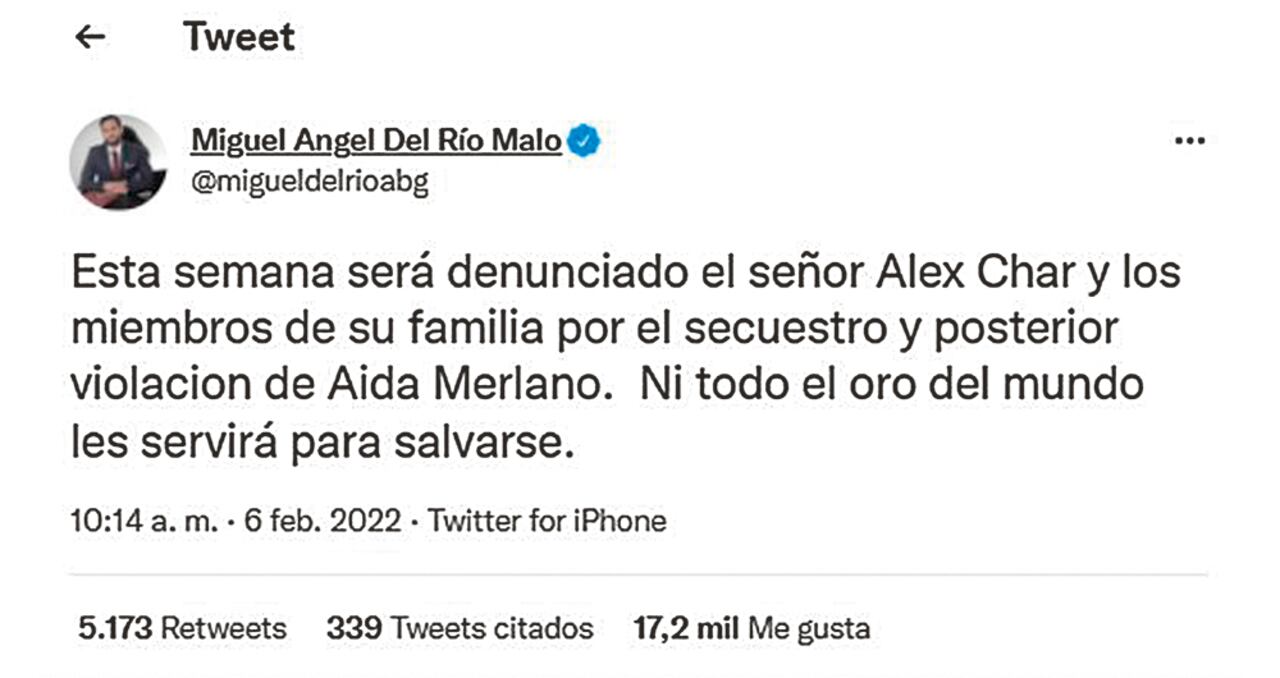 Pero la Ñeñepolítica y Aida Merlano no son los únicos procesos mediáticos en los que el abogado supo colarse. También apareció como representante de víctimas en el llamado caso Uribe, las supuestas presiones a testigos que llevaron al expresidente a la detención domiciliaria. Del Río se convirtió en el abogado de Deyanira Gómez, la excompañera sentimental del polémico testigo Juan Guillermo Monsalve.