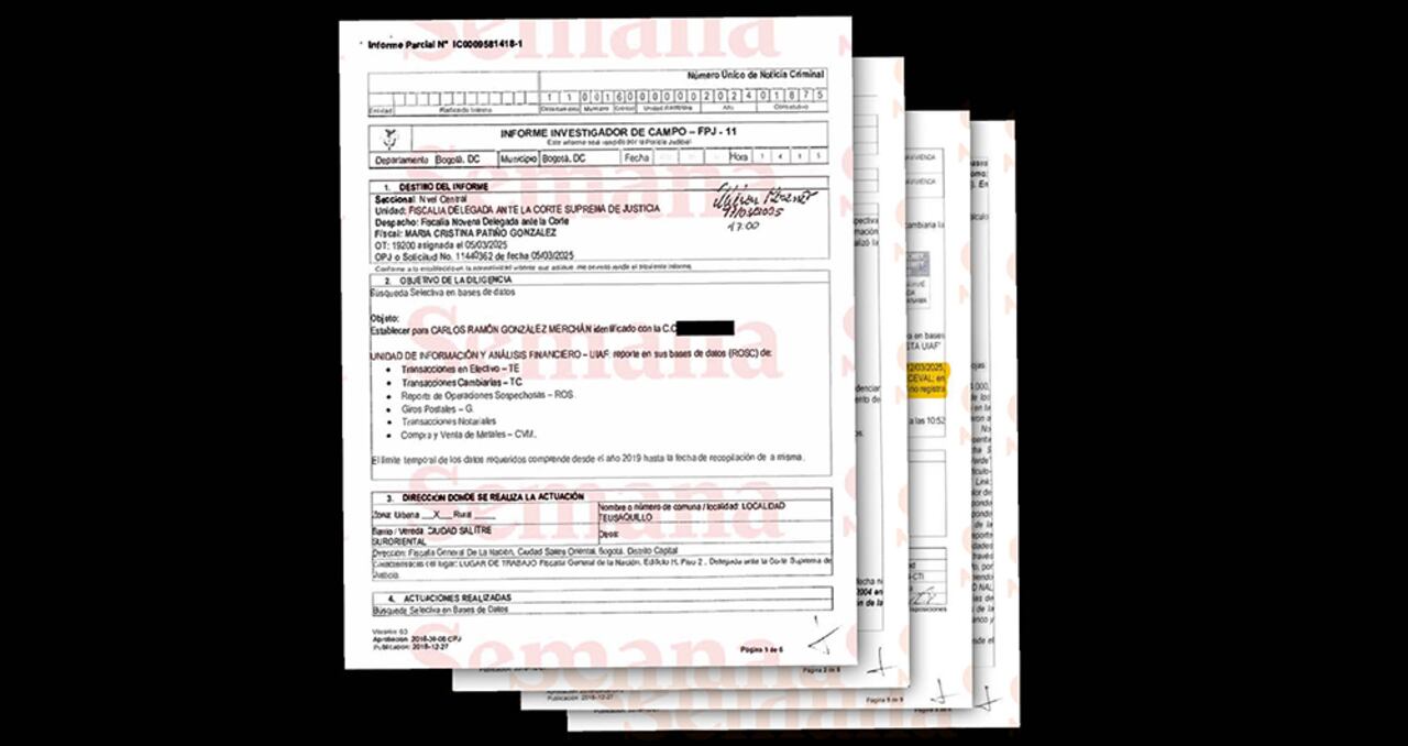 En la búsqueda selectiva en bases de datos, la Fiscalía solicitó un reporte detallado de las transacciones notariales de González con el fin de establecer si ha habido un aumento no justificado de su patrimonio material. Pese a eso, en el reporte conocido por este medio no aparece relacionada esa información.
