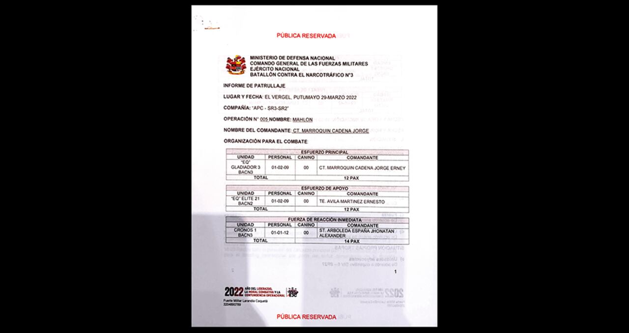 El asunto es delicado. SEMANA ya había revelado los detalles de la operación Mahlon n.º 5 y un documento reservado, denominado “Informe de patrullaje”, considerado la prueba reina. Este narra en detalle cada uno de los pasos del operativo: planeación, labores de inteligencia, ejecución y resultados operacionales.