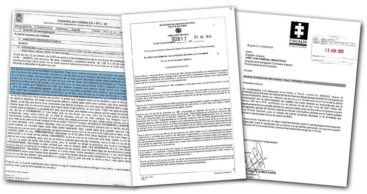 En la misma respuesta, la Dijín anexó el Manual único de policía judicial, pero efectuó una nueva advertencia: “Que verificada la herramienta gerencial… no se encontró relación de procedimientos y guías asociadas a las actividades de investigación judicial para el manejo de fuentes humanas, formales y no formales”.