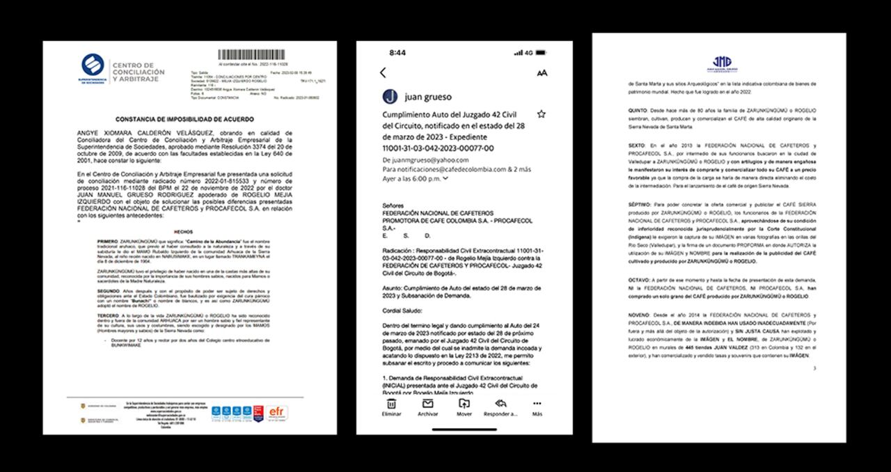 Se trata de un pleito jurídico cuyas pretensiones ascienden a más de 2 millones de dólares, por el uso de la imagen de Zarunküngümü, un líder arhuaco. Él asegura que nunca le consultaron y no le han comprado un solo grano de café, como señalan en la publicidad.