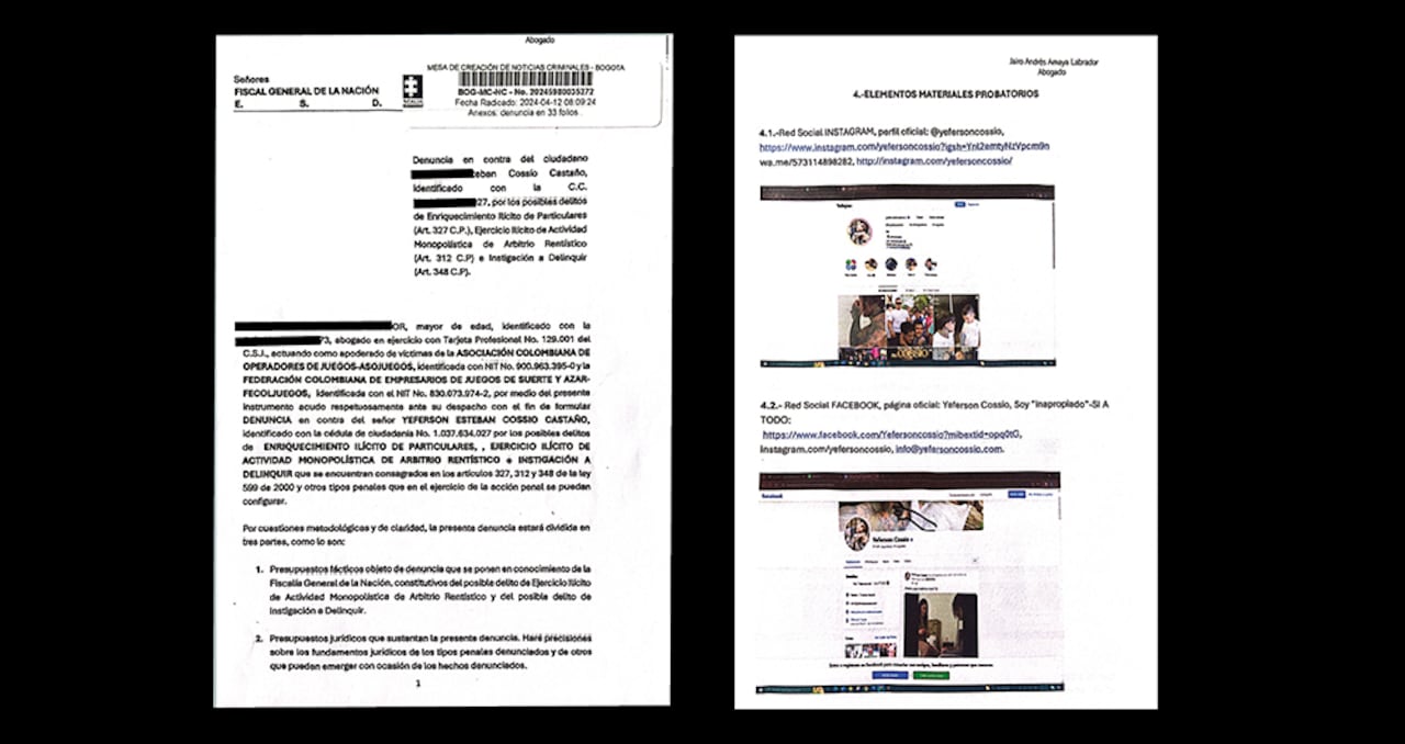 La denuncia contra el influencer fue interpuesta justamente por la Asociación Colombiana de Operadores de Juegos (Asojuegos) y la Federación Colombiana de Empresarios de Juegos de Suerte y Azar (Fecoljuegos). Lo que se plantea es que Cossio, a través sus redes sociales, promueve juegos de suerte y azar que no están reglamentados ni tienen autorización, por tanto, son ilegales. Además, el dinero que recauda no forma parte del “monopolio rentístico”, lo que ocasiona millonarias pérdidas al sistema de salud, al que deberían llegar los impuestos por esta actividad.
