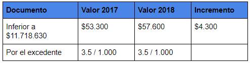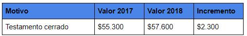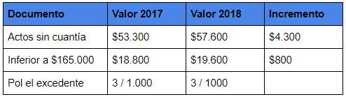 Las siguientes tablas muestran los valores de 2017 y cómo quedaron ajustados para 2018, para los principales compromisos que se realizan en las notarías del país.