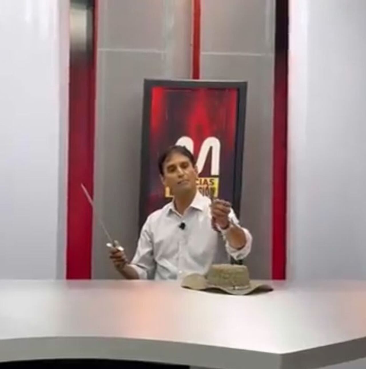“Con esta cuchilla, nosotros tenemos que acabar con la corrupción, dándole duro, no con medias tintas”, añadió el hombre mientras la cabeza de la supuesta serpiente volaba por los estudios de televisión.