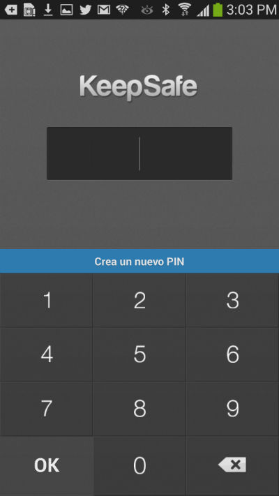 3. Una vez descargada la aplicación, esta le solicitará que ingrese un código de 4 digitos que será su clave para ver las fotos. Debe ingresar este dato dos veces: