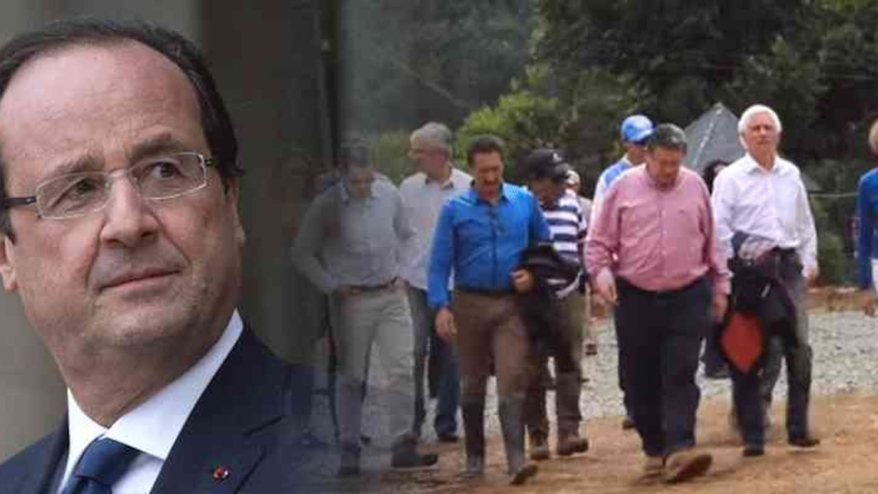 Según Nueva Colombia Noticias, el embajador de Francia en Colombia, Jean-Marc Laforêt, llegó en los últimos días a la zona de preagrupamiento de las FARC en La Elvira para organizar la logística del viaje de Hollande.