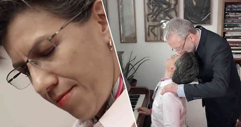 Detrás de la aprendiza de piano está el patriarca Antanas Mockus, exalcalde de Bogotá. Mockus, apoyador de políticos de todas las tendencias a través de las últimas décadas, titubea en su dicción, pues está enfermo, como lo sabe todo el país. Al exhibir su dolorida oración, tal vez se apela a un sentimiento de compasión o de ternura —o de culpa— por la enfermedad y la senectud. El estado de estragamiento del patriarca da además a la imagen otro sentido: el de la sucesión. Antanas Mockus está cercano al final de su vida, y está presentando a su heredera (una de decenas, como sabemos) bajo sus grandes y poderosas manos, cuyas uñas garriformes se presentan en primer plano.