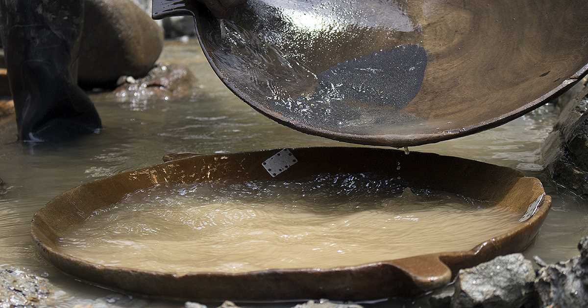 Luego viene el ‘lavado’: el momento de examinar si el material seleccionado lleva oro. “Ahí es cuando nos damos cuenta si lleva pinta o no”. Quien no haya sido iniciado en esta tradición dejará pasar la oportunidad de extraer el oro y comenzará de nuevo la ardua labor de selección en otro lugar de la empalizada. Para los hijos de Américo, la tercera generación en trabajar esta mina, eso no es problema. Con mucha sutileza añaden un poco del agua que corre a las bateas que contienen la muestra de gravilla. Luego, con la espalda doblada y sin moverse del canal las hacen girar invocando en ellas el poder de la fuerza centrífuga. El agua y la gravilla más liviana salen por el borde superior y abajo se van sentando las pepitas de oro.