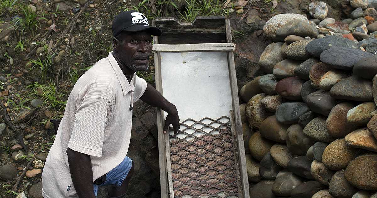 La mina de Américo descansa en un cerco rodeado de bosque a tres kilómetros de la carretera que va a Tadó (Chocó). De lunes a sábado Américo cruza el puente colgante para adentrarse en el monte, en compañía de tres hijos, ya casados, y de su mujer. A veces hay que rozar la tierra, sembrar plátano o recoger la cosecha de los frutales, entonces turnan el trabajo en la mina con los cultivos. “La clave está en diversificar —dice Américo—, no se pueden descuidar las otras fuentes de sustento para dedicarse solo a la mina”.