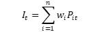 Donde lo que quiere decir esta fórmula es que el valor de índice en momento t es igual a la sumatoria de los precios de cada una de las i acciones que componen la canasta multiplicada por un peso específico w llamado ponderador, de ahí el nombre de promedio ponderado. Lo que al final indica que la fluctuación en el valor del índice estará dada por la variación de los precios de las acciones dando mayor peso a aquellas que se consideren más representativas.
