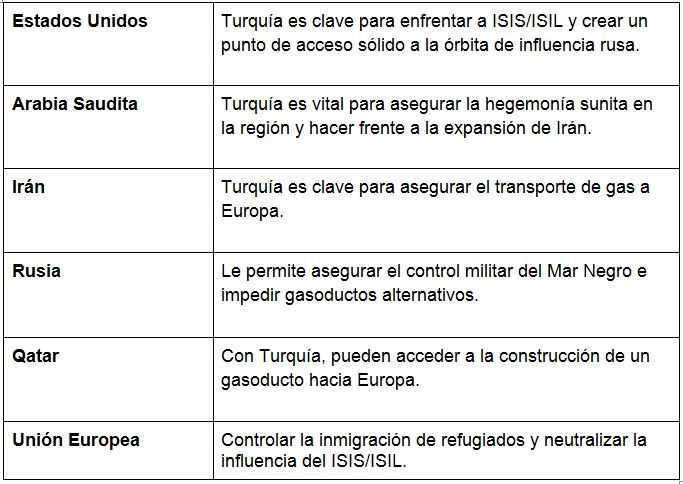 Turquía es un país tremendamente estratégico geopolíticamente hablando. Estos son los intereses de cada uno de los países más influyentes en la región: