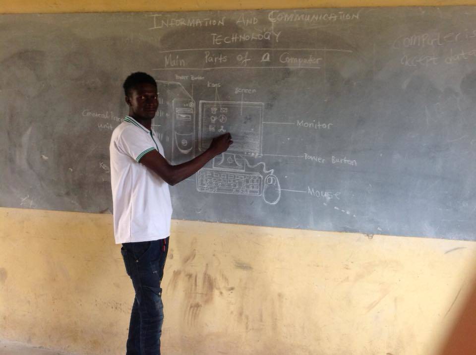 Así, por medio de un dibujo de un computador, los profesores en Ghana han enseñado la asignatura de informática. Cortesía:Ousman Umar.
