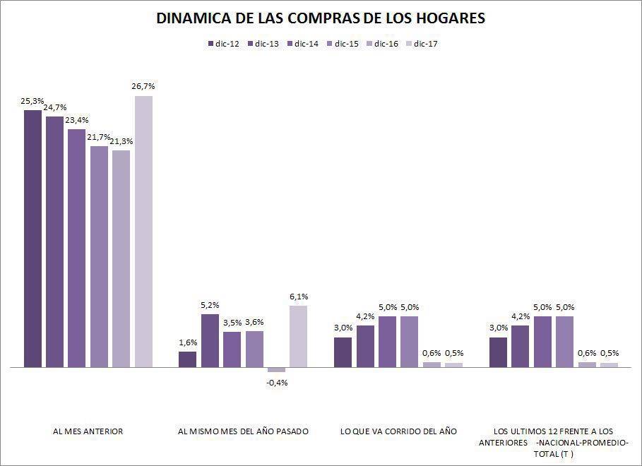 Por ciudades, las que más aumentaron el gasto en el último mes de 2017 fueron Villavicencio (11,3%), Pasto (9,3%), Bogotá (7%), Cali y Cartagena (ambas con 6,5%).