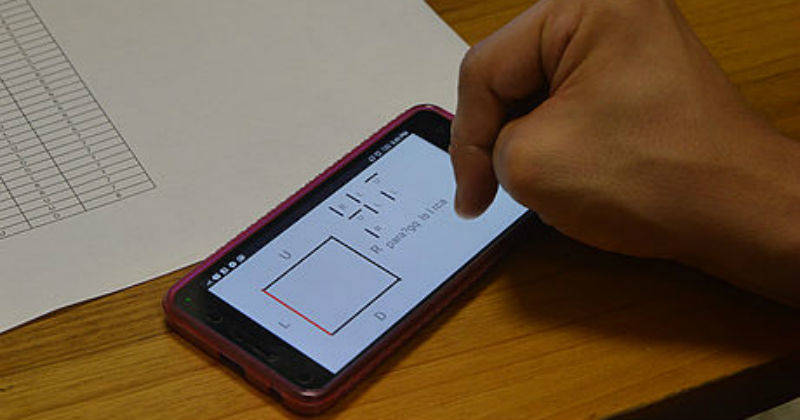 “Para conformar una letra el usuario debe tocar tres lados. Por ejemplo para escribir la vocal ‘A’ tendrá que dar tres toques en los diferentes lados del cuadrado, así: uno en Upper y dos en Left; esa acción traerá automáticamente la letra”, complementó la docente y asesora del proyecto, Patricia Jaramillo Álvarez.