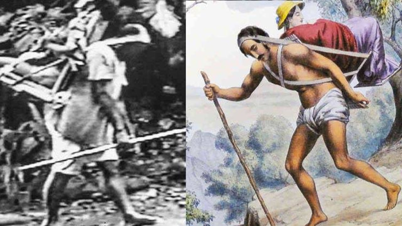 Cargueros. José Alejandro Restrepo. 1999. Xilografía sobre fotografía, dibujo y video. Para hacer su propia obra, Restrepo repitió la trayectoria que Humboldt hizo durante su viaje por el paso del Quindío.