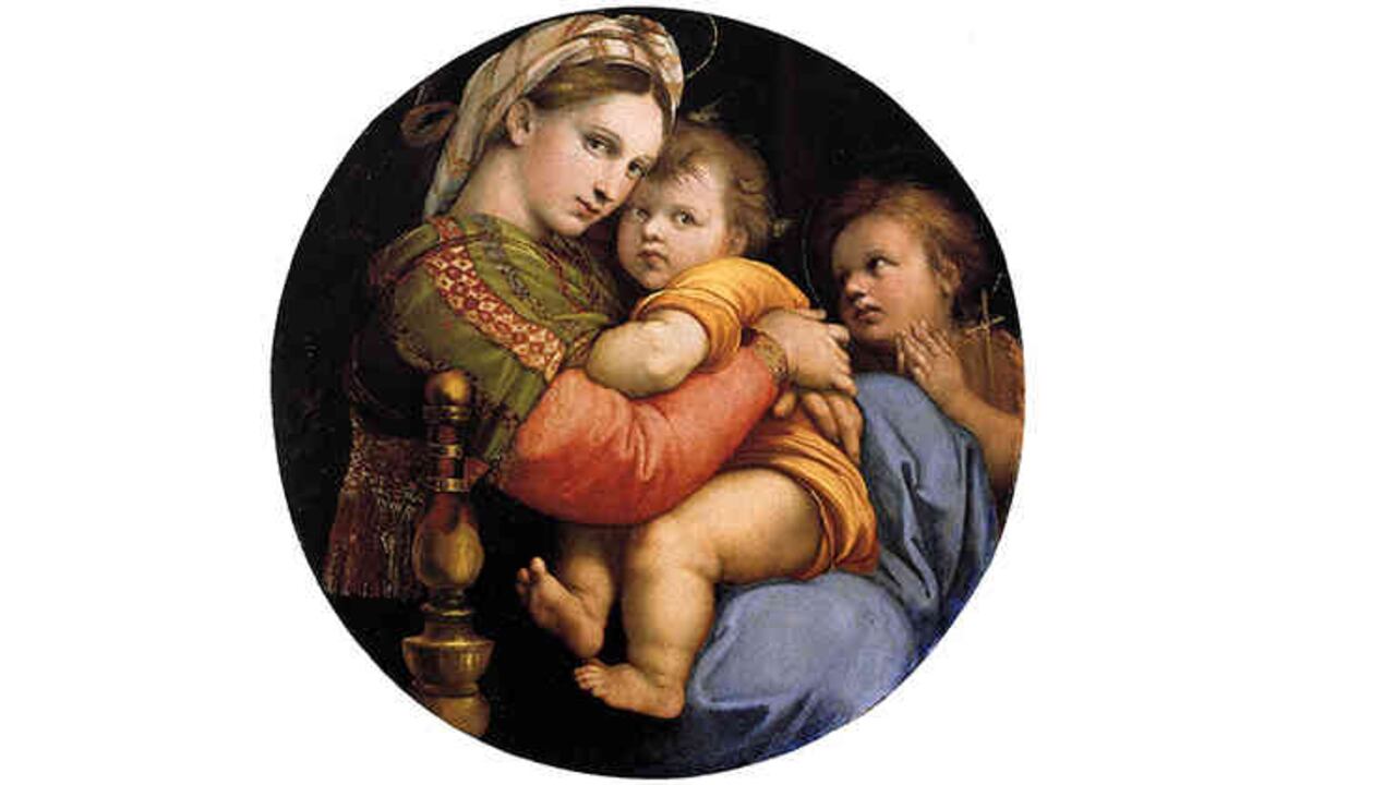 Casi todos hemos tenido un Rafael en casa. Cuando digo Rafael, me refiero a Rafael Sanzio, el gran artista del Renacimiento, contemporáneo de Leonardo y Miguel Ángel, autor de una larga y perdurable iconografía religiosa. En el apartamento de mi madre siempre estuvo colgada una pequeña reproducción de la Virgen de la silla (1513-1514), una de las obras maestras debidas a su pincel, cuyo original se conserva en el Palacio Pitti, en Florencia. En este pequeño cuadro aparecen en escena la Virgen María, el niño Jesús y San Juan Bautista. Como en todas las obras de Rafael, sorprende la viveza de los colores y la delicadeza de las miradas entre los personajes que conforman la escena: la Virgen María mira profundamente al espectador del lienzo, mientras Jesús, cargado sobre los brazos de María y con la cabeza recostada en la suya, mira hacia otro lado, como lo haría cualquier madre con su hijo. Jesús tiene la mirada perdida, con ojos de apapacho, de sentirse pleno en el consentimiento materno; mientras que San Juanito, primo y amigo de Jesús, mira a los dos con una mezcla de devoción y quién sabe si de envidia, de envidia por no recibir, en ese preciso instante, el infinito amor de la madre.