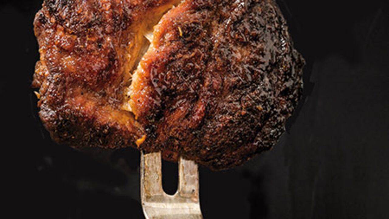 Precaliente el horno a 160 °C. Para el glaseado, cocine todos los ingredientes durante 8 minutos a fuego medio. Condimente el cerdo con sal y pimienta y unte con un poco de este glaseado, reserve el resto. Dispóngalo en un recipiente con tapa, apto para horno, y cubra con el caldo, los vegetales y las hierbas. Tape y cocine durante aproximadamente 2 a 3 horas, hasta que esté tierno y se desmeche fácil con un tenedor. Retire de la olla y disponga en una bandeja con papel mantequilla, lleve nuevamente al horno y unte ocasionalmente con el glaseado hasta que dore. Sirva caliente.