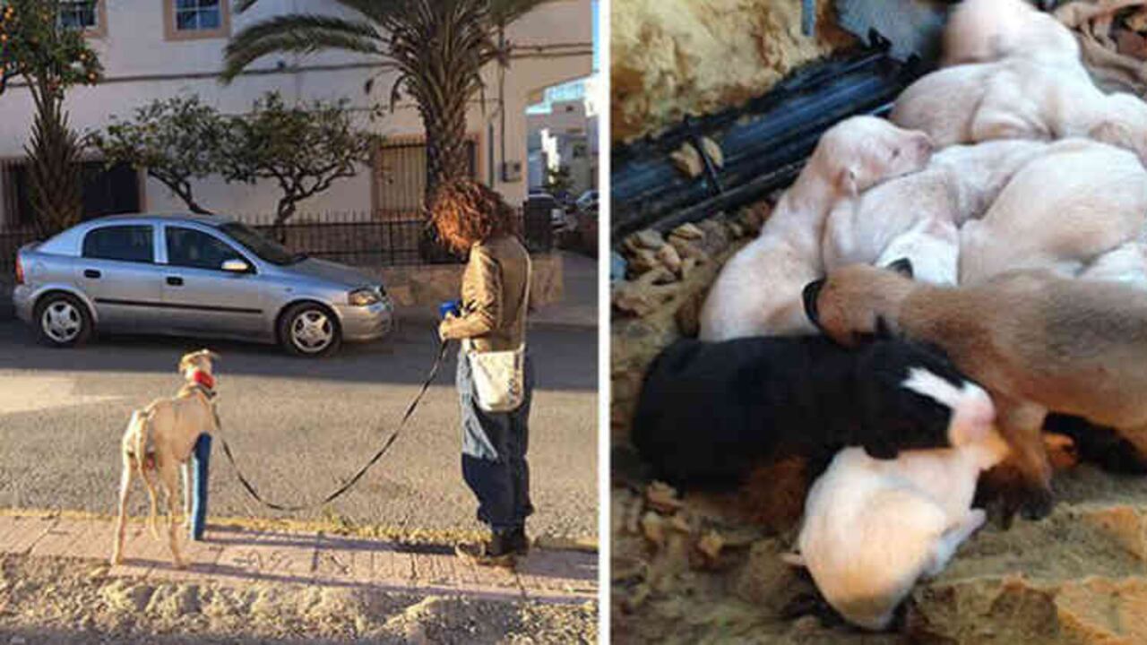 La historia se dio a conocer cuando la psicóloga Lianne Powell se encontraba con una amiga en un mercado de Vera, España, cuando vio a una perra de raza galgo vagando por el lugar con la pata delantera rota.