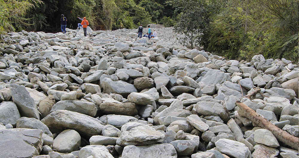 Miles de piedras son arrastradas por las crecientes desde lo alto de la montaña y depositadas en las partes anchas de la quebrada Las Pizarras.