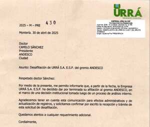 “El señor Juan Acevedo Rocha presuntamente fungiendo como primer suplente del presidente (cargo que no se evidencia en el certificado de existencia y representación legal de la empresa Urrá S.A. E.S.P) envía una adenda a un día del cierre del proceso Licitatorio N° 001 de 2025, cambiando todo el cronograma del proceso, situación que deja en evidencia una conducta gravísima con una falta de planeación y potencial suspensión del cargo", dijeron en la queja presentada al Ministerio Público.