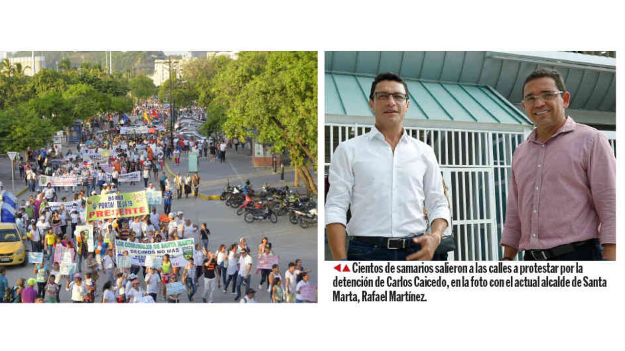 La mayoría de los samarios recibieron muy mal la noticia de la detención de su exalcalde Carlos Caicedo Omar cuando esperaba el vuelo a Bogotá para inscribir su candidatura presidencial por el movimiento Fuerza Ciudadana, tras recoger 2.053.000 firmas en los 7 departamentos del Caribe. Lo supieron por una emisora local, de boca del propio alcalde actual, Rafael Martínez, quien ha mantenido el legado de Caicedo, que anunció al aire que allí esperaría a los agentes porque sabía que la orden de captura era para los dos.