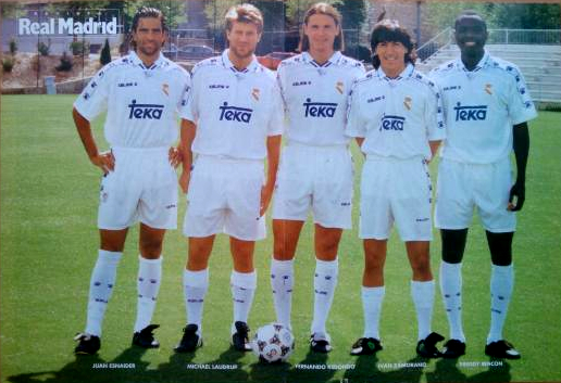 Juan Esneider (Arg), MIchel Laudrup (Din), Fernando Redondo (Arg), Iván Zamorano (Chi) y Fredy Rincón eran estrellas del real Madrid en 1995. | Foto: TodoColección