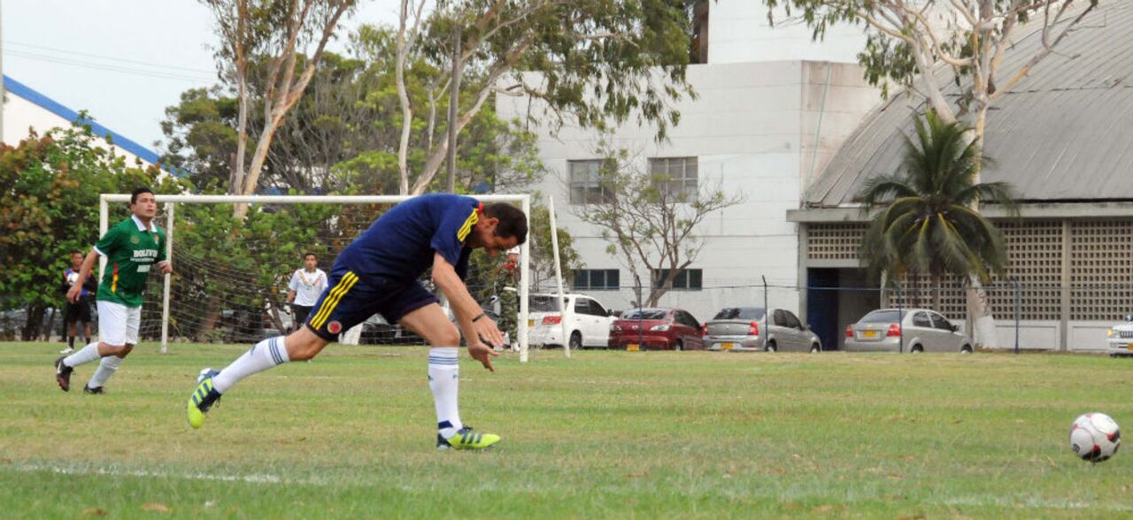 El capitán colombiano, Juan Manuel Santos, tuvo que abandonar el partido por compromisos de Estado. Motivó al resto del equipo para conseguir la victoria.