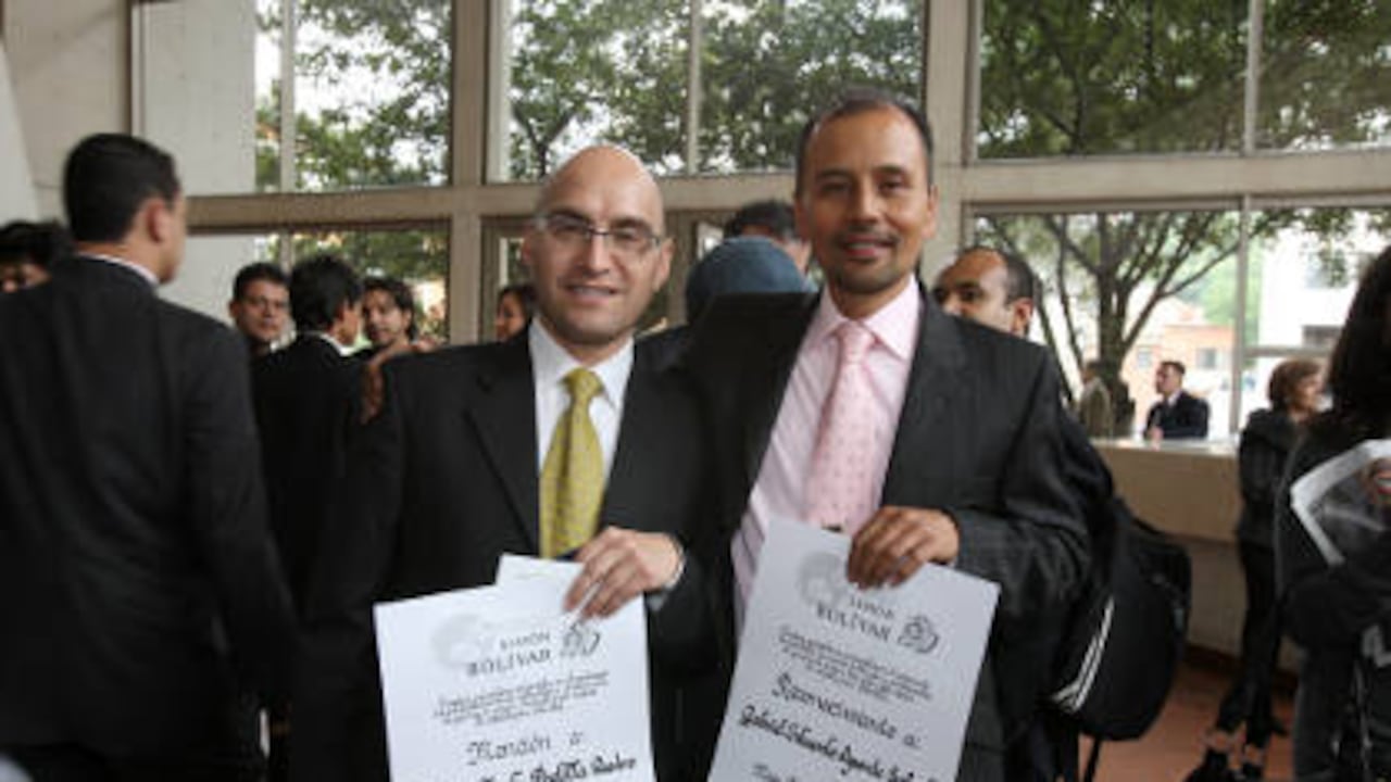 Álvaro José Moreno García y Carlos Fernando Bogotá recibieron el premio a mejor trabajo en el área económica, por su investigación ISS, colapso inminente, publicado en la Revista Dinero, de Publicaciones SEMANA.