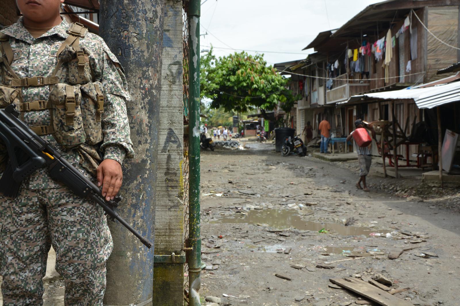 Se trata del denominado Espacio Humanitario Puente Nayero, un ejercicio de resistencia en torno a una calle larga que más parece un barrizal, con casas de madera desvencijada, ropa tendida en las fachadas y de fondo el grisáceo como el océano Pacífico. Ese debe ser el único lugar de todo el Puerto vetado para los grupos armados ilegales.