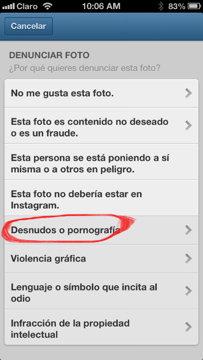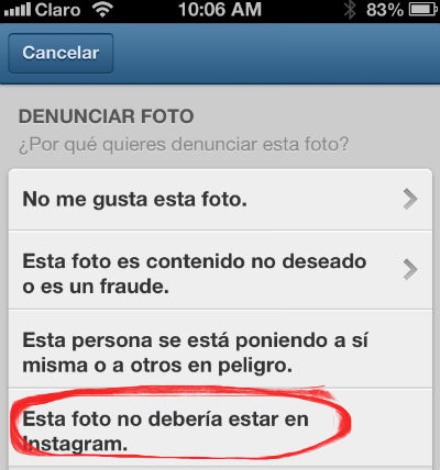 Las reglas de Instagram son claras, ninguna persona no puede subir contenido ofensivo para la comunidad, pues dentro de los usuarios hay menores de edad. Por lo que cada vez que usted vea una foto con características sexuales, en sus manos está denunciarla.