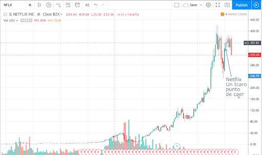 Comportamiento de las acciones de Netflix y su caída en los mercados. Fuente: Tradingview.