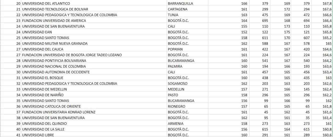 Este escalafón se basa en los resultados agregados de las Saber Pro que reporta el Icfes, los cuales incluyen dos tipos de pruebas: las generales, que evalúan habilidades en lectura crítica, razonamiento cuantitativo, competencias ciudadanas, comunicación escrita e inglés y las específicas, que miden competencias claves de cada carrera.