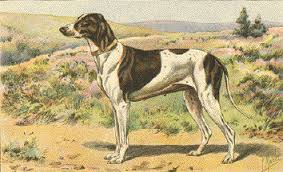 Pesado y alto, con cabeza cuadrada y orejas largas. Un típico sabueso de caza inglés utilizado para seguir el rastro de la presa. Su desaparición se debe a que terminó mezclándose con otras razas.